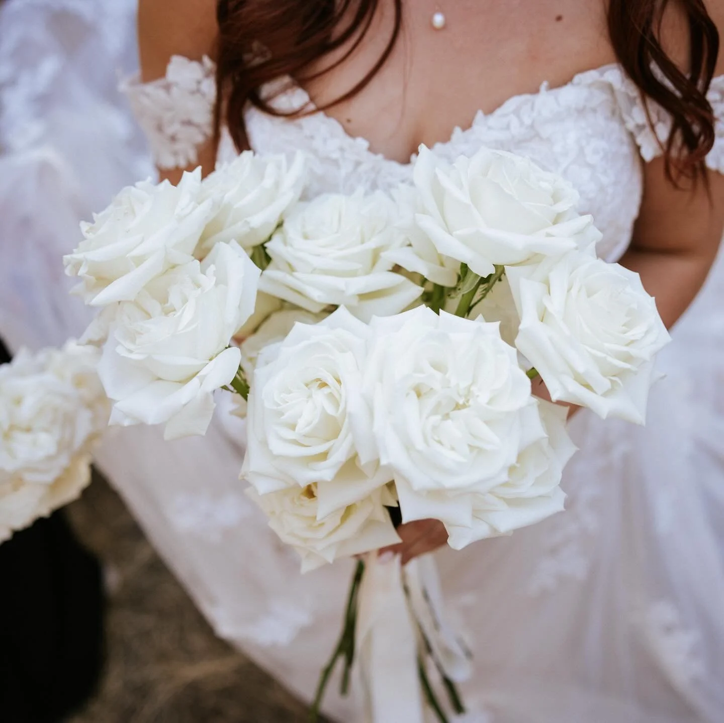 There’s something so effortlessly elegant about an all-white rose wedding. Long stems, perfect swirls, and a design that never goes out of style. A floral moment that feels just as dreamy today as it w
